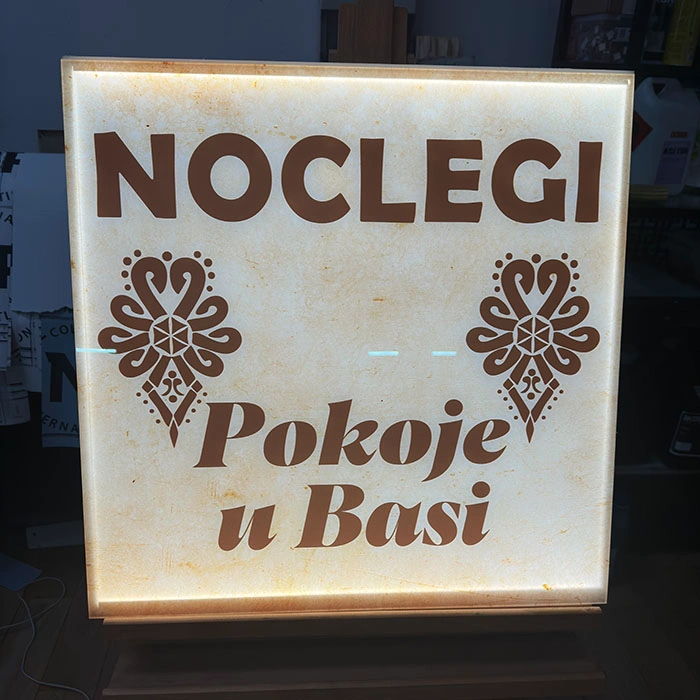 Powierzchnia dibondu dostępna jest w wielu kolorach, co pozwala dopasować kaseton do identyfikacji wizualnej marki klienta. Tło w połysku nadaje reklamie efekt premium i dodatkowo przyciąga uwagę. Nasze możliwości technologiczne pozwalają łączyć dibond z drukiem UV oraz naniesieniem grafiki z lakierem. Dzięki temu powstają reklamy podświetlane o lekkim połysku i wyjątkowej wyrazistości.
